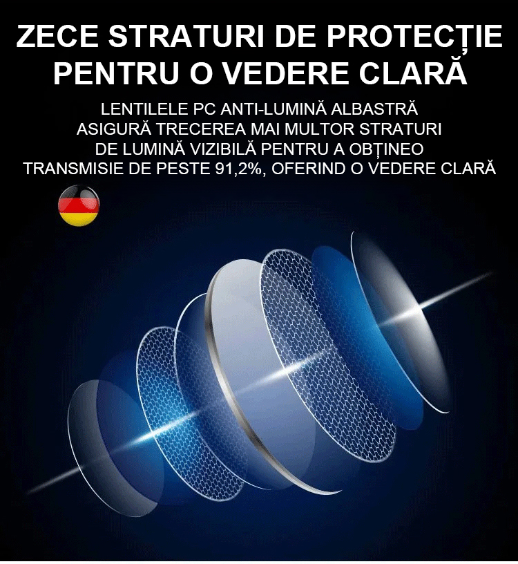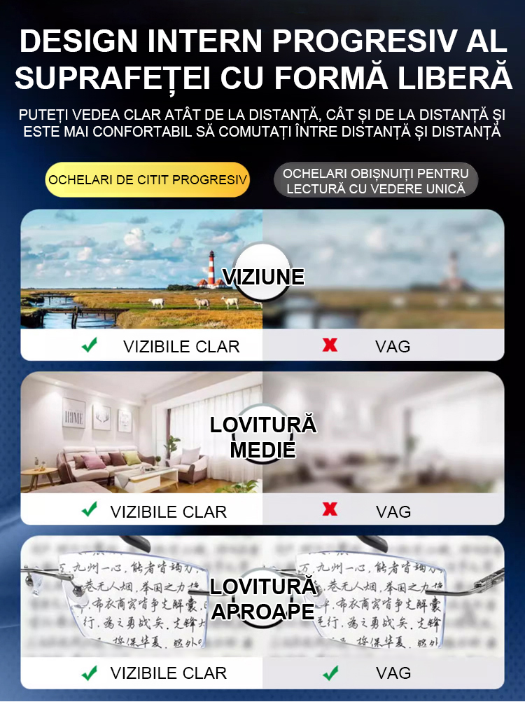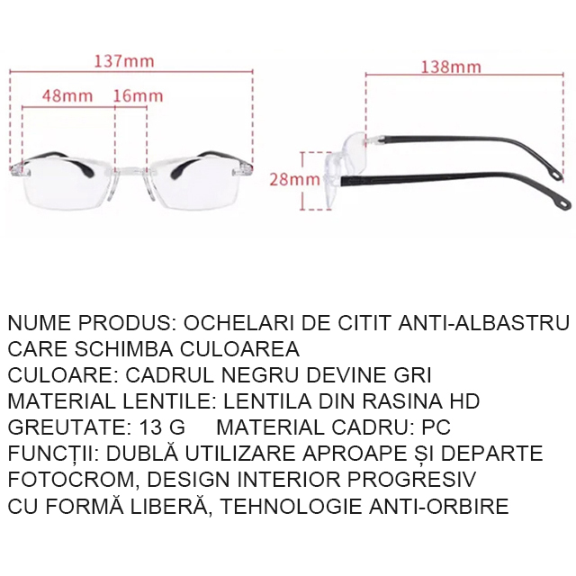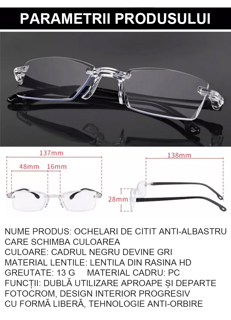Ochelari de presbiopie fotocromatici cu protecție împotriva luminii albastre